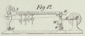 sich ein Kurbelzapfen, welcher die Bewegung vermittelst der Stangen a, a, a und der Winkelhebel b,