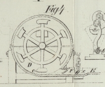 rotirende Bewegung zu versezen. Indem dadurch das Rad h
