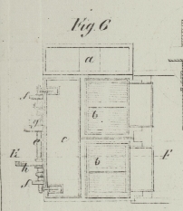 gewöhnliche Weise durch die Tropfpfanne (dripping-pan) aufgefangen und fließt von da durch die Rinne E,