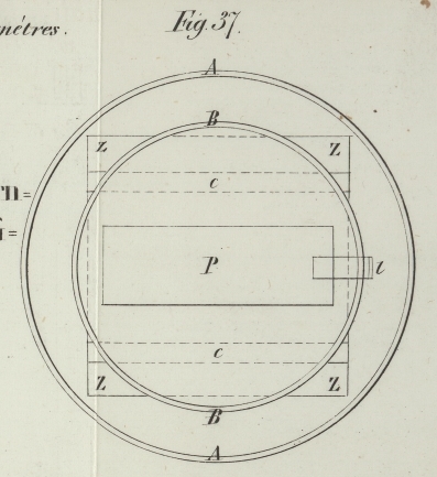 A, A ist eine Schale von Porzellan; B, B eine poröse Thonschale; z, z, z, z eine