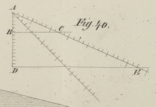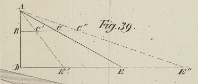 Dreieke ABC, Fig. 39, stelle A B eine gegebene Anzahl Minuten und Secunden und AC die Anzahl in dieser Zeit durchlaufener Meilen