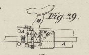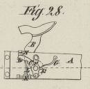 zu ziehen; D ist ein Aufhälter, gegen den das Rad C sich lehnt, nachdem es den Hebel A verlassen hat; damit dieser Aufhälter das Zurükziehen