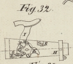 ist der Drüker, welcher die Bewegung dem Federhause mittheilt; U ein Haken, der in demselben Sinne, wie der mit Bezug auf Fig. 30 und