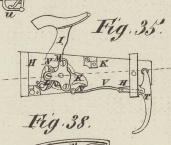 38 zeigt, daß nur die Spiralfeder den Hahn erhebt und die Schwanzschraube