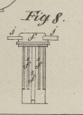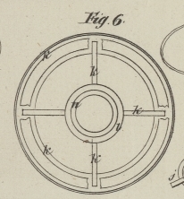 der durch das warme Wasser oder Metall geschmolzene Talg zu den in dem Rohre f befindlichen Dochte. Das Rohr f besizt noch einen anderen zum Hinaufschrauben des Dochthälters g dienlichen Schliz f². Dieser Dochthälter besizt