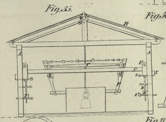 Grundriß der Maschine. A ist das Gestell; B das Dach; C die Führung, welche