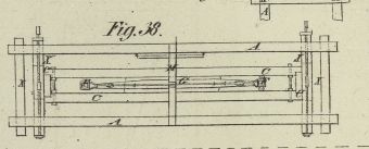 längs der Stange M gleitet. H und I sind bewegliche, auf den eisernen