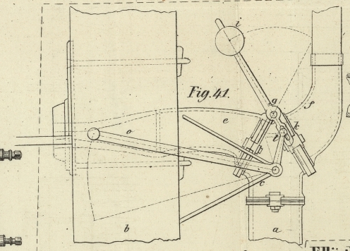 hervorspringenden Lappen dieser Röhrenenden die kleine Querachse g der auf beiden Seiten mit Filz belegten Klappe h angebracht, und durch einen darauf gegossenen Kitt