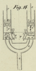 Klappenventile, durch die das Wasser aus den Pumpenstiefeln A in die Kammer T tritt. Die Ventile X, Fig. 15, unterscheiden