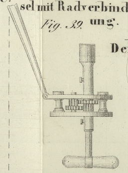 obere Rad rechts bewegt, und das an der Achse dieses Rades sizende Trieb bewegt das