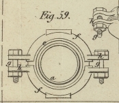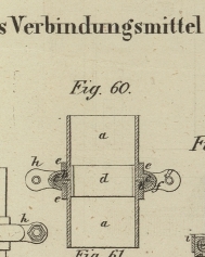 Röhrenstücke im Durchschnitte dar, deren jedes mit einer abgedrehten Flansche b versehen ist; c ist eine