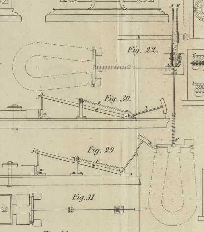 Cylinder a und den Stiften p' in metallischer Berührung. Gegen dieses Rad drückt beständig die Feder 27.