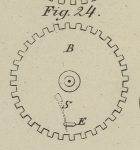 Hemmungsmechanismus besteht in den Rädern c, d, g, dem