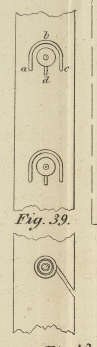 38 und 39 zeigt, leicht in das Loch bringen zu können. An den Draht wird ein