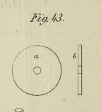 den Durchschnitt einer flachen kreisrunden Scheibe aus Schmiedeisen dar, ungefähr