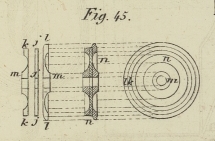 Eisen vor; c, c, die konischen Walzen und d die Rotationsachse der Eisenscheibe. Die Gestalt des