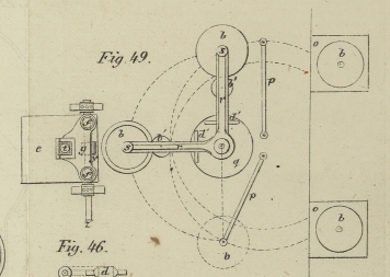 Treibwelle t setzt mit Hülfe der Räder u, u und der Achsen v, v die