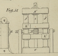 Fundamentalplatte e', zwei gedrehten Säulen f', f' und einem Obergestell g'. Die Enden der Lager h', h' passen an die