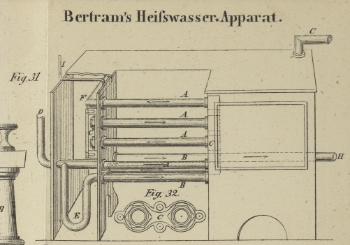 | Titel: | Oekonomischer Heißwasser-Apparat von A. Bertram in Glasgow. |