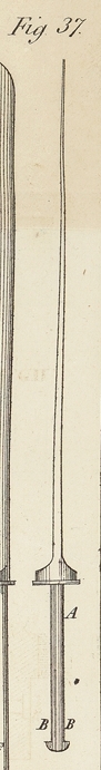37 ist eine Ansicht der Klinge, mit Angel vom Rücken aus, und Fig. 38 eine