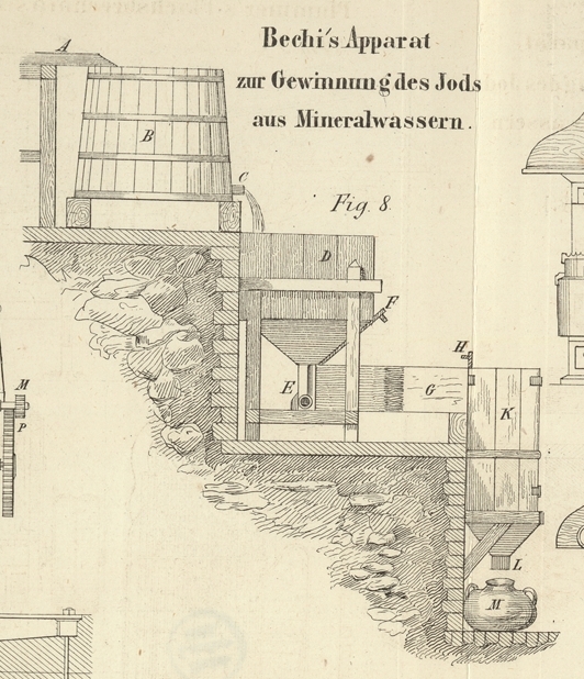 | Titel: | Einfaches und ökonomisches Verfahren um das Jod aus den Mineralwässern etc. zu gewinnen; von Emil Bechi in Florenz. |