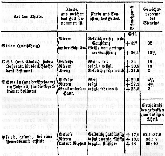 3) daß der Schmelzpunkt der aus Thieren gezogenen Fette in der Regel bei denjenigen