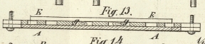 Ueber dieser verbundenen Platte befindet sich eine Eisenplatte E von etwa 1 Zoll Breite und 2 1/2 Linien Dicke; sie ist mit zwei