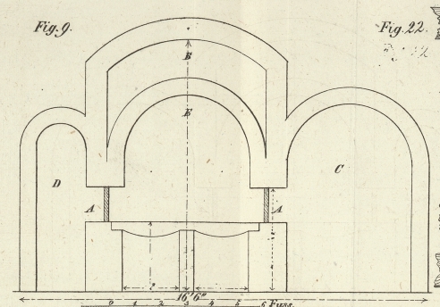 Seitenwänden des Ofens sind von 5 zu 5 Fuß Oeffnungen A,