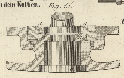 die ihrerseits in einen Hals an der Kolbenstange treten. Der Ring A hält daher den getheilten Ring B fest.