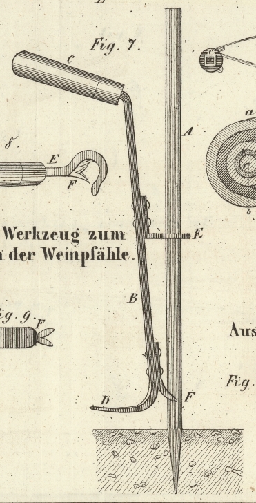 Werkzeug zum Eintreten der Weinpfähle, von Hrn.
