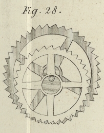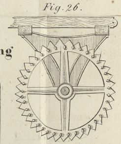kleinen, mit Zähnen versehenen Scheiben, welche sich auf einer geraden Welle
