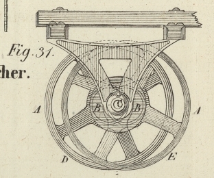 der Achse C befestigten Excentrics B drehen können. Die Excentrics sind auf der Achse neben