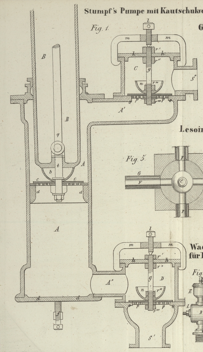 | Titel: | Beschreibung einer Pumpe mit Kautschuk-Ventilen; von Gottfried Stumpf. |