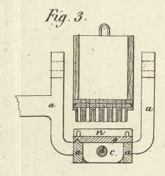 zu, bildet den Fülltrog, dessen Boden aus der dünnen Messingplatte k gebildet und möglichst dicht mit Schrauben an der