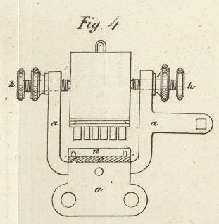 den Mantel zu berühren. An dem entgegengesetzten Ende des Gestells a sind zwei Lappen angegossen, welche im rechten Winkel