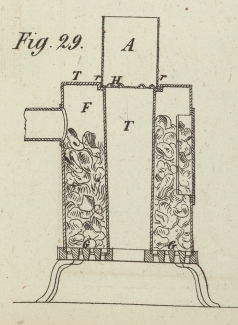 Feuer brennt. Der Deckel des Ofens, welcher den Feuerraum aber nicht die Röhre T verschließt, ist rings um die letztere mit einer