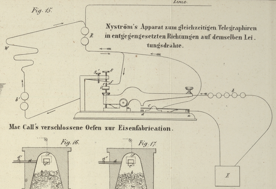 | Titel: | Ueber das gleichzeitige Telegraphiren in entgegengesetzten Richtungen auf demselben Leitungsdrahte; von C. A. Nyström, Telegraphen-Director zu Oerebro. |