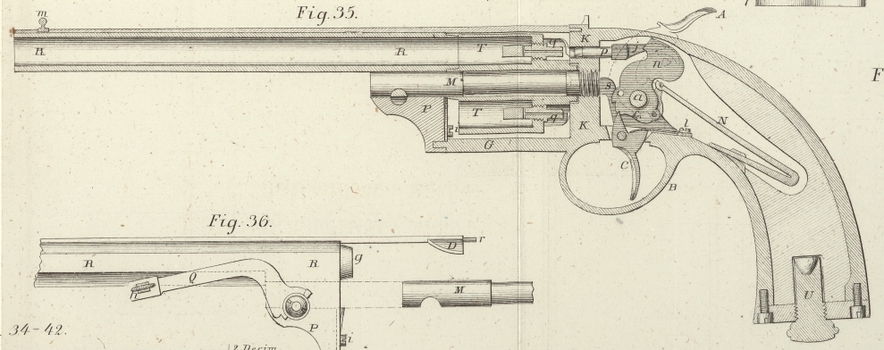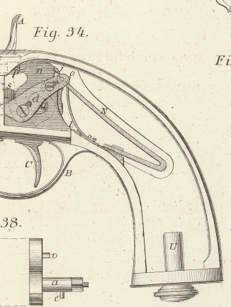Kolben der Pistole selbst gegen den kurzen Stempel oder Ladstock U schlägt, welcher mit einer zur Aufnahme des conischen