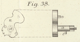 35 ist der Theil d weggelassen, um die Nuß n sichtbar zu machen. In Folge des Druckes einer kleinen