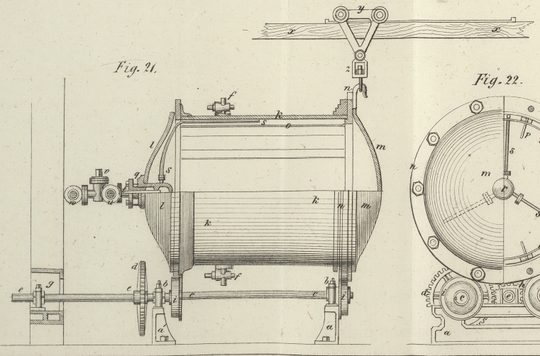 Raum, welcher die Lumpen und Lauge enthält, geführt wird. Diese cylindrische Trommel