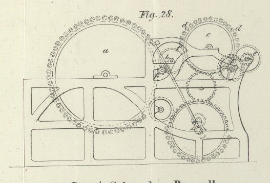 Hauptwalze auf die Feinwalze c überträgt. Auf letzterer