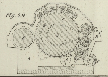 welcher das Material von demselben aufnimmt und dem Hauptcylinder C übergibt. Der Cylinder D