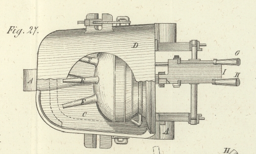 stellt einen theilweis senkrechten Seitenaufriß von dem ganzen Brown'schen, zur Benutzung fertigen Astparat dar, mit dem halben