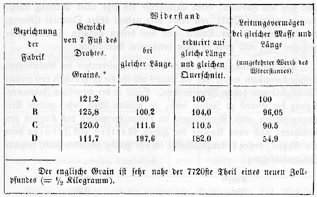 Leitungswiderstand hat; man fand, daß das für die atlantische Kabel angefertigte
