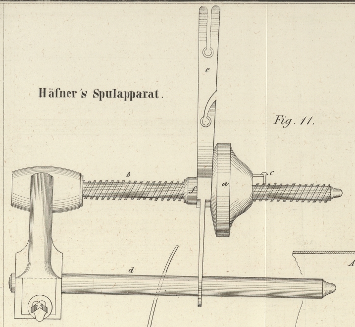 Zu näherem Verständniß der Einrichtung dieses Spulapparats dienen die Figuren 11 und 12, woraus mit