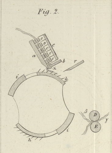 Der Abreißapparat besteht aus zwei Walzen J und G, von denen die
