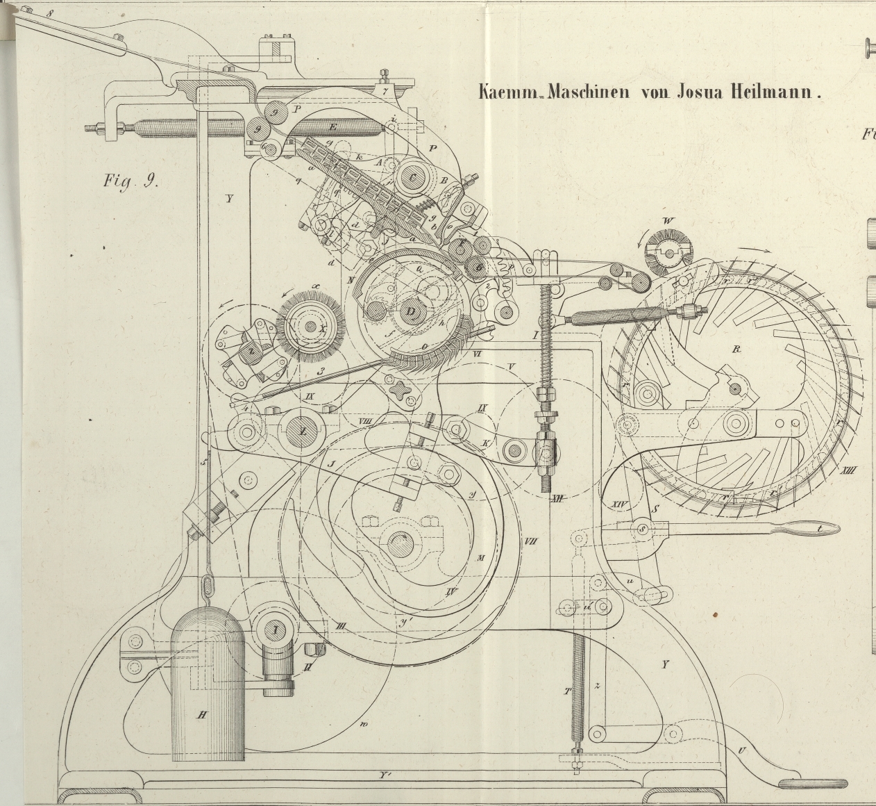 Es erübrigt uns nun noch, die Kämmmaschine für kurzstapelige Faserstoffe zu