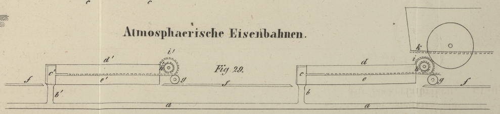 Kolbenstange befestigt ist und auf der festen Unterlage f rollt. – Wenn der Waggon vorüber, sind alle Kolben