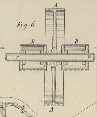 Seite der Treibscheibe A kleine Nebenscheiben B, B angebracht, welche sich beim gewöhnlichen Gange der