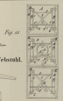 O eine Grenze gesetzt. Eine an die Arme I, I befestigte correspondirende Stange O' hilft die Construction verstärken. Die separate